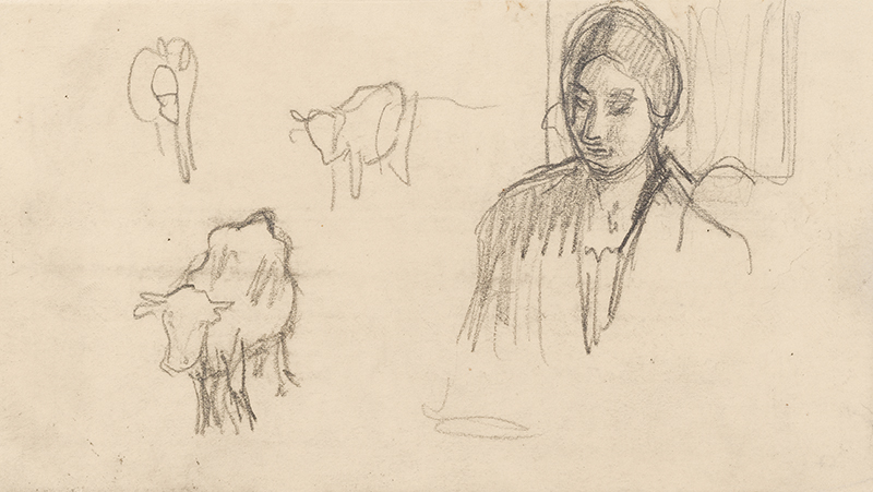 Etudes : femme et vaches